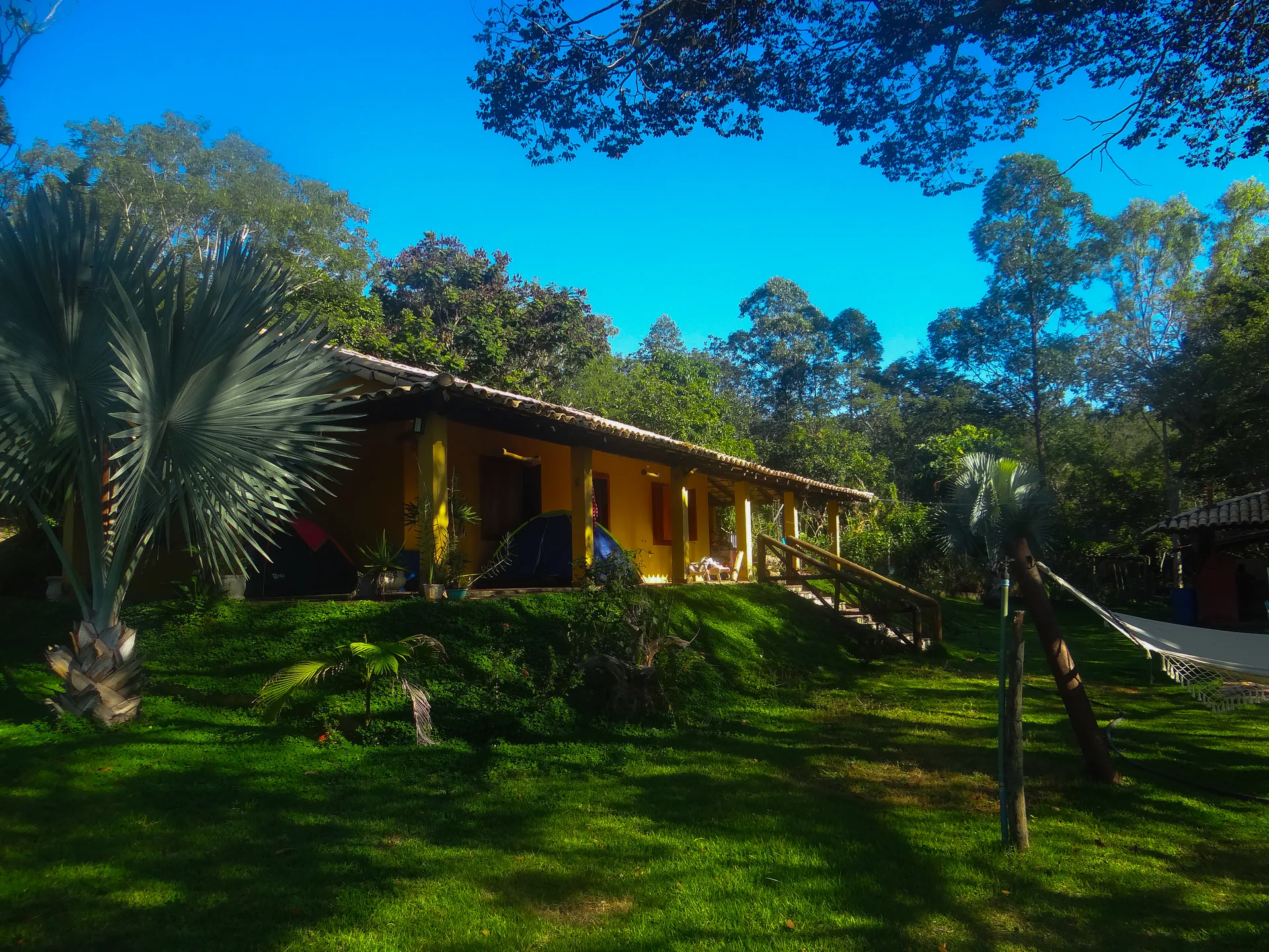 Descanse na rede à sombra das árvores, ouça o canto dos pássaros e respire o ar puro do campo. Cada canto da área externa foi pensado para maximizar o seu contato com a natureza sem abrir mão do conforto.